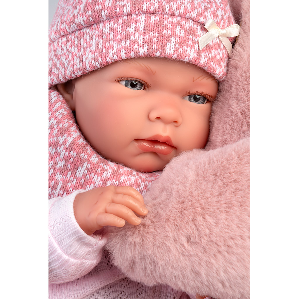 Păpușa Llorens: Nica, nou-născut de 40 cm, cu sac de dormit, este o alegere cu adevărat adorabilă dacă dorești ca copilul tău să trăiască bucuria îngrijirii în timpul jocului. Păpușa, prezentată în imagini și lucrată cu multe detalii, vine cu o căciulă tricotată roz și un fular moale, ceea ce conferă jocului o atmosferă caldă și primitoare. Sacul de dormit pufos inclus nu oferă doar un loc de dormit confortabil, ci, datorită designului care permite înfășarea păpușii, cei mici își pot acoperi și adormi cu ușurință păpușa preferată. Acest set este perfect pentru jocurile de rol și pentru dezvoltarea empatiei.