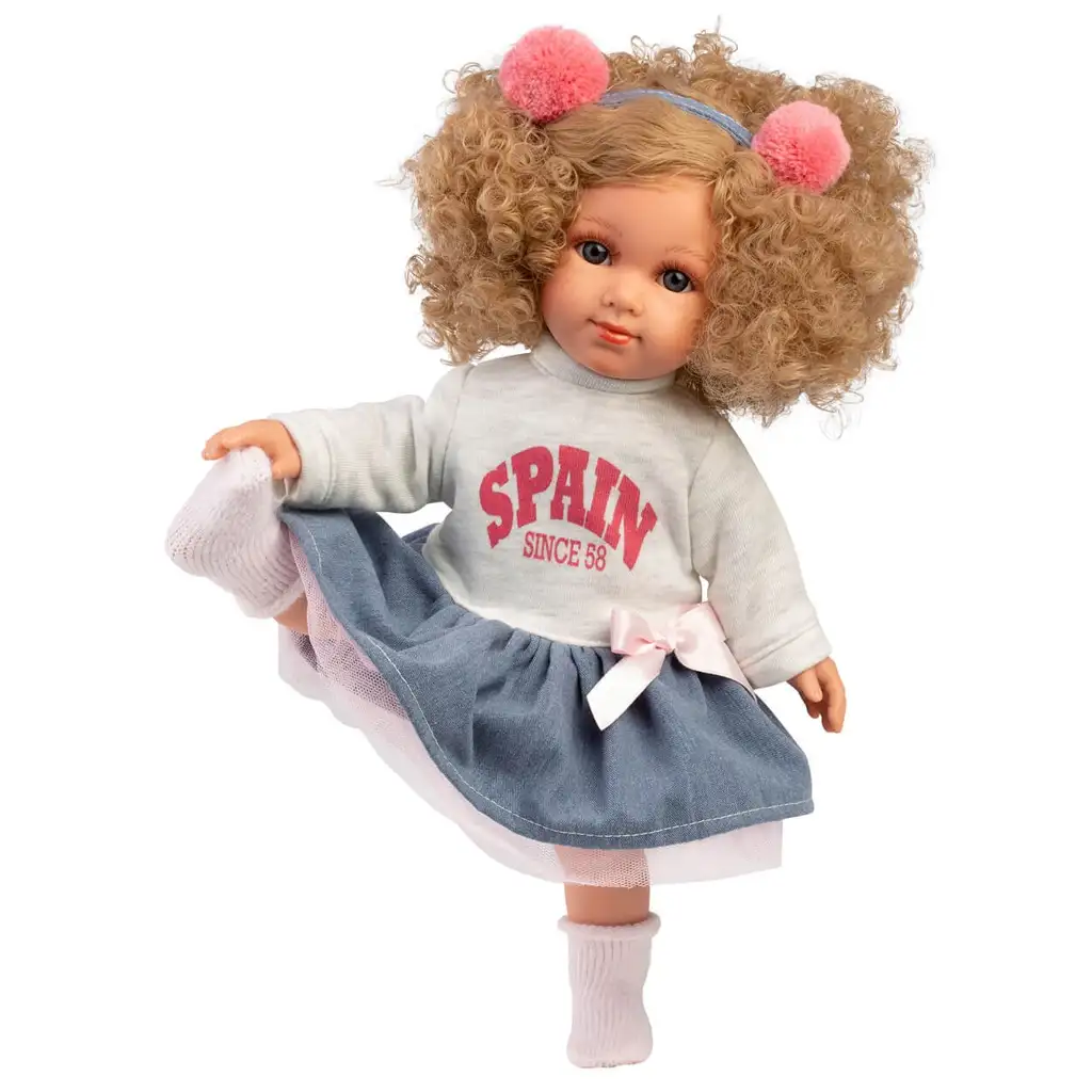 Llorens: Păpușă Elena de 35 cm cu păr creț și fustăLlorens: Păpușă Elena de 35 cm cu păr creț și fustă