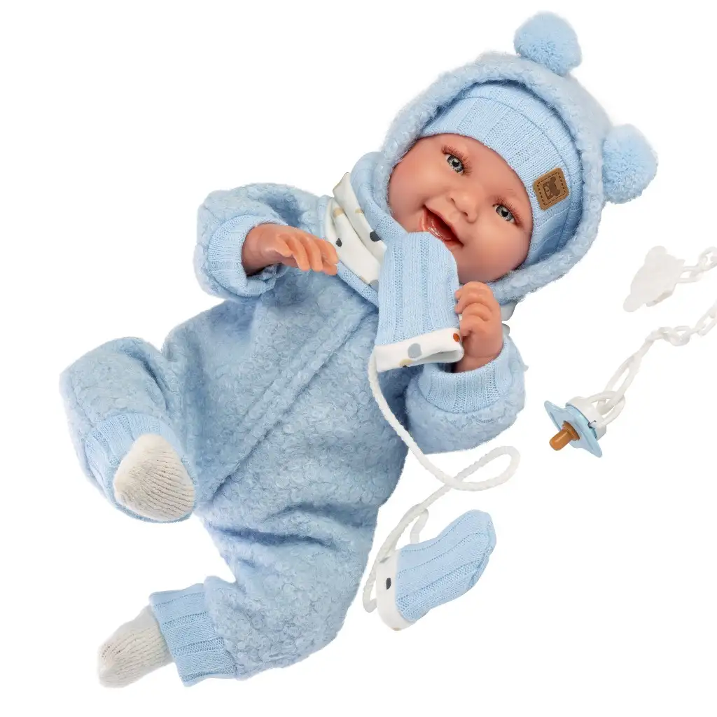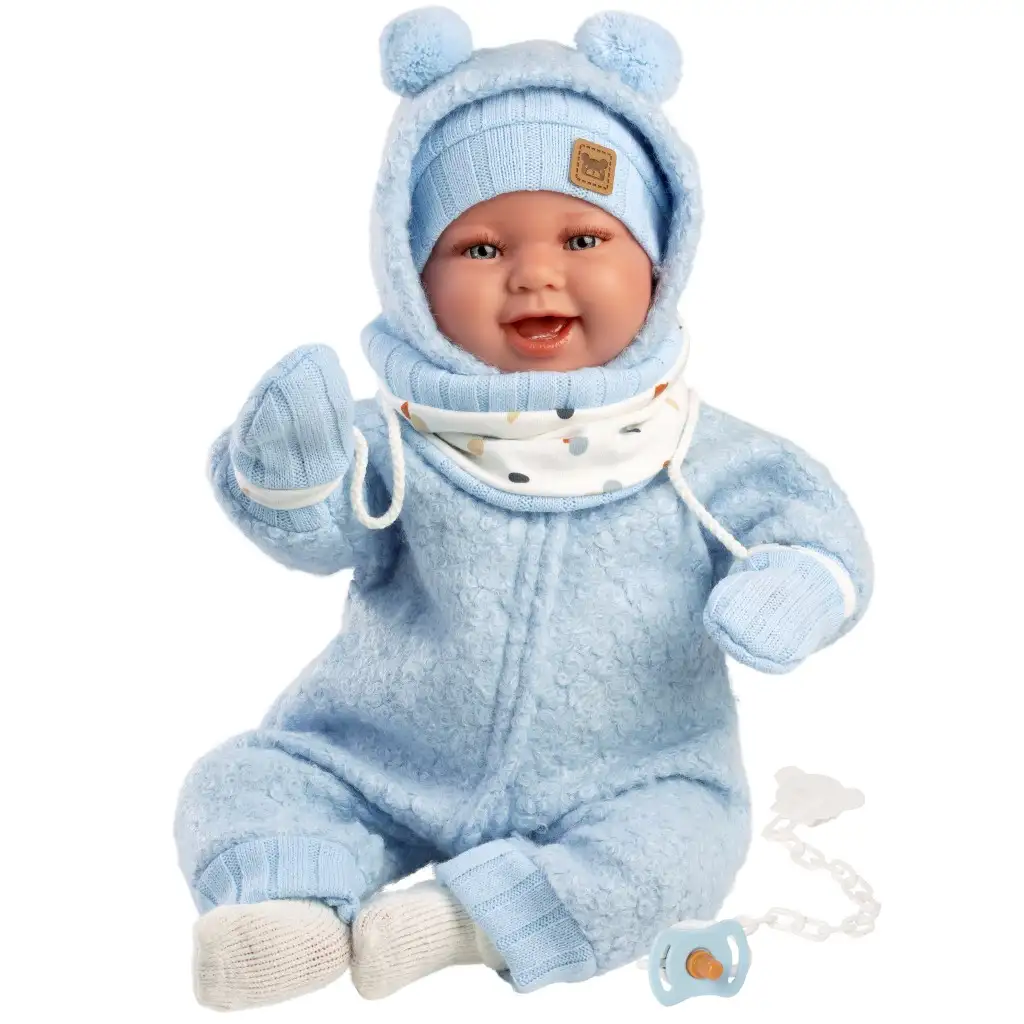 Llorens: Păpușă nou-născută de 44 cm cu sunet, îmbrăcată în haine cu glugă albastră.Llorens: Păpușă nou-născută de 44 cm cu sunet, îmbrăcată în haine cu glugă albastră.