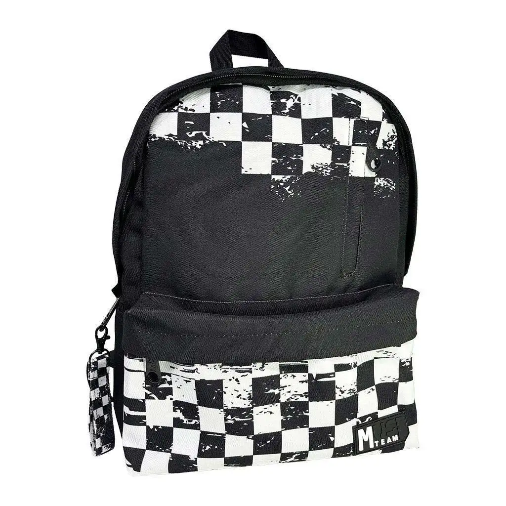 Rucsacul Chessboard cu colțuri rotunjite din colecția Must Team nu este doar stilat, ci și extrem de practic – o alegere ideală pentru elevii de gimnaziu sau de liceu. Modelul alb-negru, asemănător unei table de șah, conferă rucsacului un design modern, cu o notă subtilă de „street style”, accentuată de grafica cu aspect uzat și de logo-ul minimalist, oferindu-i un aer și mai îndrăzneț. Designul continuă și pe bretelele din spate, astfel încât fiecare detaliu este unitar și plin de caracter.
