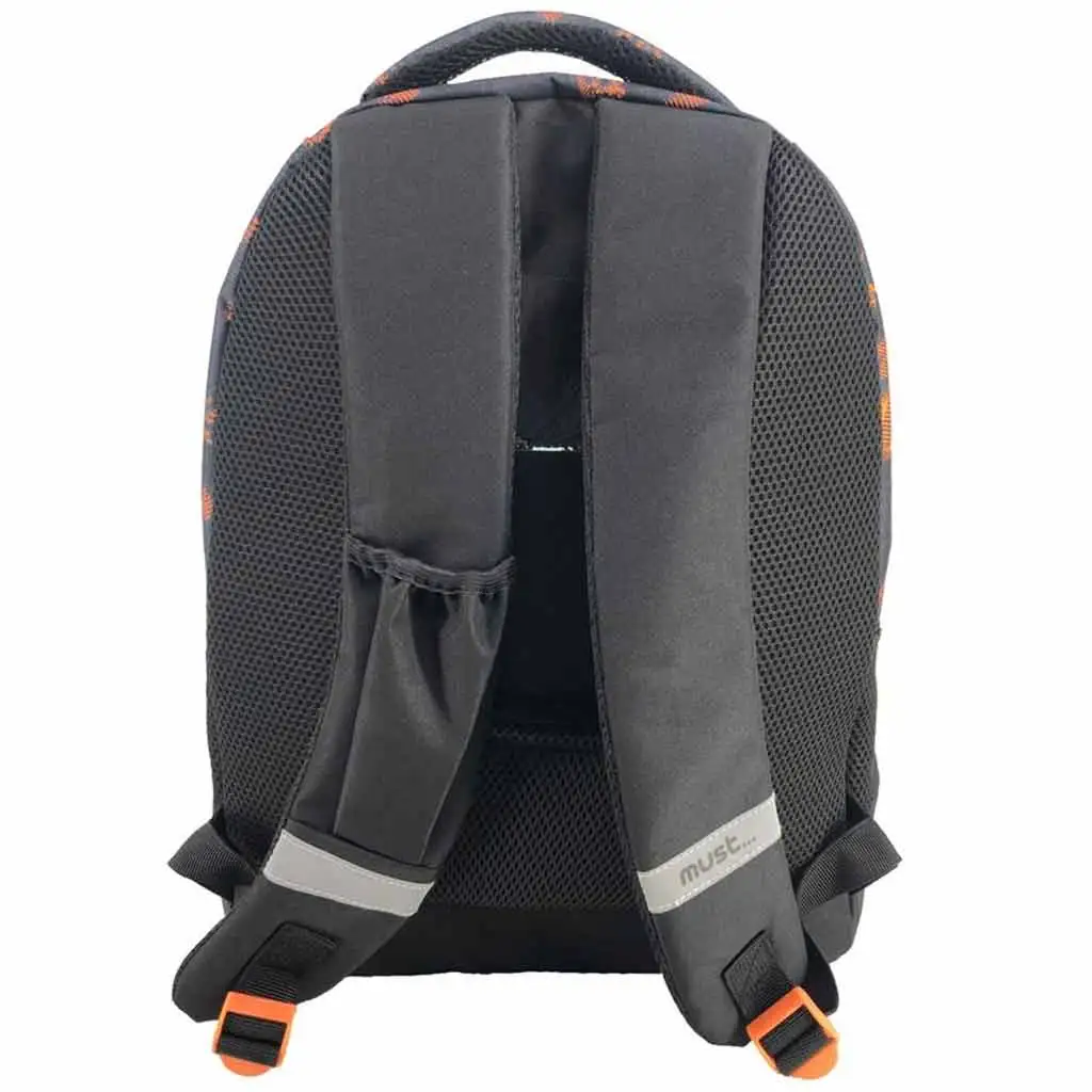 Ghiozdanul are trei compartimente spațioase, care permit organizarea și accesul ușor la rechizitele școlare. Fermoarele rezistente asigură că totul rămâne în siguranță la locul său. Bretelele de umăr și spatele căptușite, cu design ergonomic, oferă un confort sporit, reducând presiunea asupra umerilor și spatelui. Buzunarele din plasă de pe laterale sunt ideale pentru sticle de apă sau obiecte mai mici.