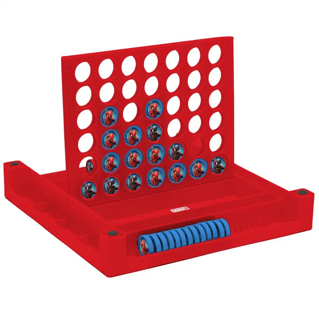 Cutia de joc compactă de 29 × 29 × 6 cm conține toate elementele necesare: suportul și discurile tematice cu Omul-Păianjen pentru jocul „Patru la rând”, precum și o tablă de joc colorată, plină de super-eroi, pentru „Șerpi și scări”. Cele două jocuri dezvoltă abilități diferite: unul pune accentul pe gândirea strategică, celălalt pe noroc și competiție amuzantă. Astfel, experiența de joc este diversă, iar copiii învață și se dezvoltă prin joacă.
