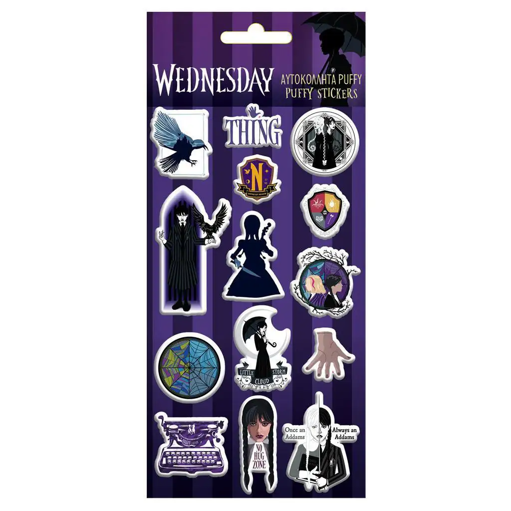 Luna: Set de autocolante 3D pufoase Wednesday pe coală de 10x22cmLuna: Set de autocolante 3D pufoase Wednesday pe coală de 10x22cm