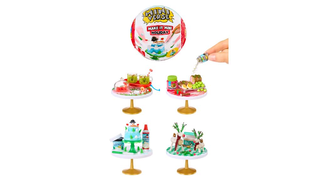 Cel mai nou membru al seriei MGA Miniverse, Make It Mini, aduce în miniatură delicatesele festive (false) preferate ale familiei! Fiecare capsulă Make It Mini Holiday conține ingrediente din plastic, unelte mici și rășină, astfel încât copiii pot crea manual replici în miniatură ale preparatelor festive. Aceste piese de colecție devin finale și pot fi expuse (sau chiar puse în casa de păpuși) atunci când rășina se întărește la lumina soarelui sau la lumină UV. Seria conține patru miniaturi diferite: Roast Beef, Snowman Cake, Log Reindeer și The Grinch Dr. Seuss Hot Cocoa Pack. Pentru copii, surpriza este că doar la deschiderea capsulei află ce fel de mâncare sau băutură pot crea. Acest joc creativ nu este doar distractiv, ci dezvoltă și dexteritatea și imaginația, în timp ce copiii se pot bucura de atmosfera sărbătorilor.