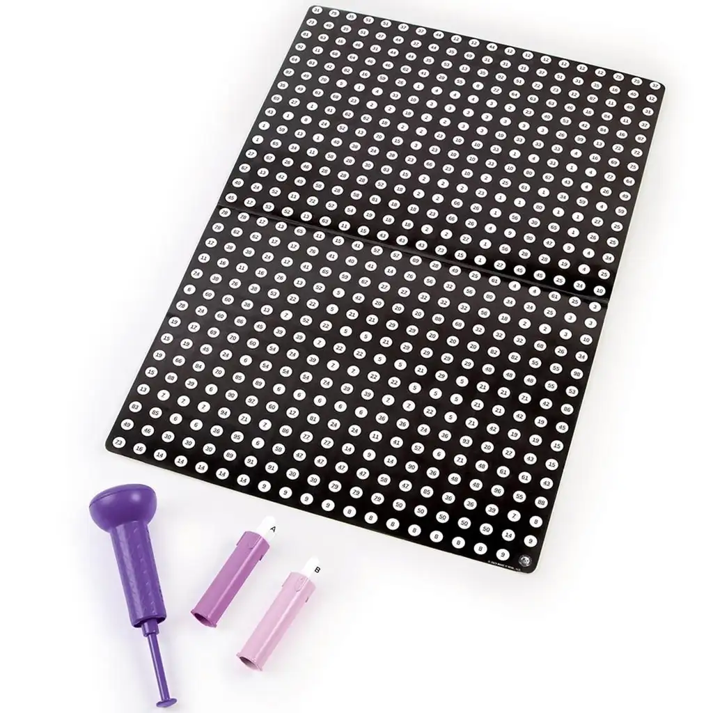 Cu ajutorul șablonului codificat cu numere din cutie, copiii pot urma instrucțiunile punct cu punct, descoperind pas cu pas rezultatul final – un poster minunat, decorat cu puncte, pe care îl pot agăța chiar pe peretele camerei lor. Dispozitivul de ștampilă are un design ergonomic, fiind ușor de folosit și pentru mâinile mai mici.