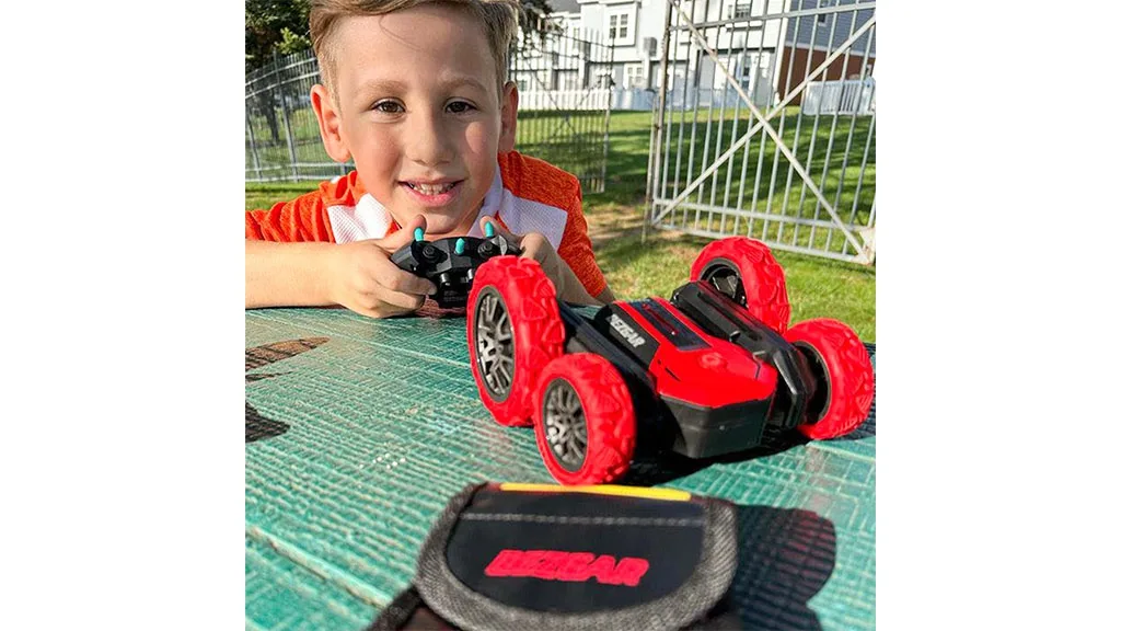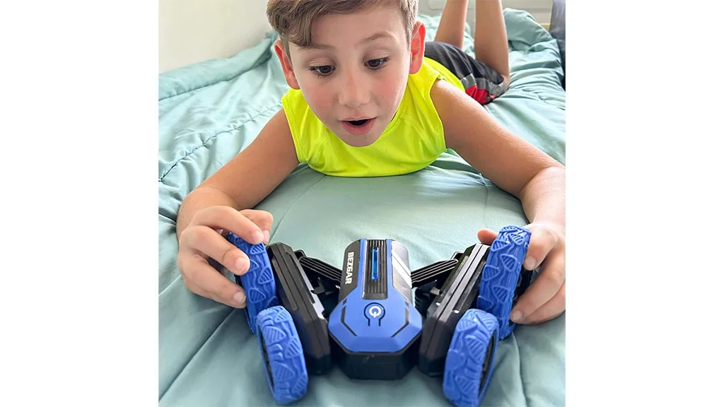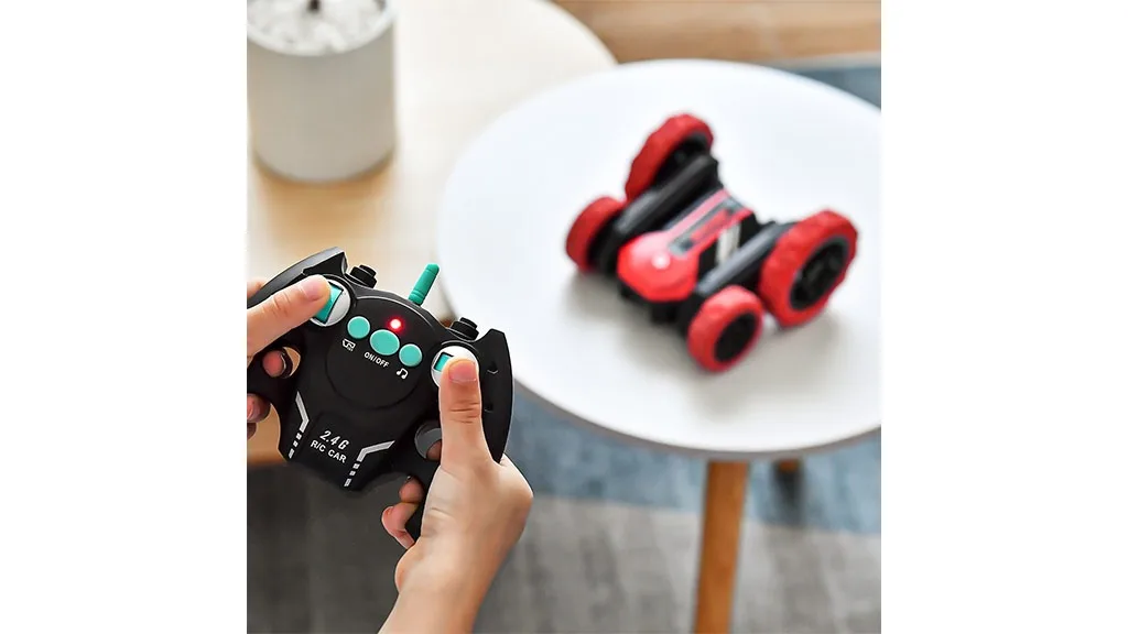 Mașina RC Stunt Car, destinată copiilor de 6 ani și mai mari, a fost proiectată pentru acțiune. Roțile vehiculului sunt mari, astfel încât poate să circule chiar și atunci când este răsturnată cu susul în jos. De asemenea, dispune de un ax special la spate care desparte roțile, perfect pentru rotație. Pe telecomandă se găsește un alt buton care activează modul Tornadă, unde RC Stunt Car se rotește pe cele două roți din față, în timp ce roțile din spate sunt în aer. Sunt disponibile trei viteze diferite de rotație pentru diferite niveluri de distracție epică.