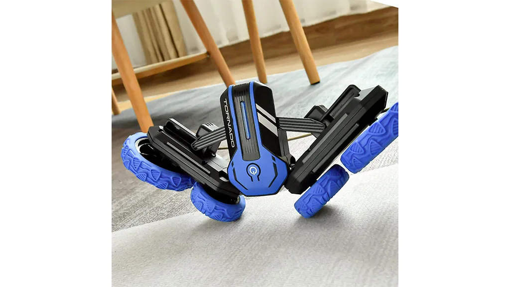 Această mașină cascadorie are efecte de muzică și iluminare, precum și se rotește 360 de grade pentru curse pe ambele părți, astfel încât copiii pot derapa și pot întoarce mașina R/C ca și cum s-ar roti ca un tornado. Mașina rezistentă la impact are și anvelope din cauciuc anti-alunecare pentru o aderență solidă în interior sau în exterior.