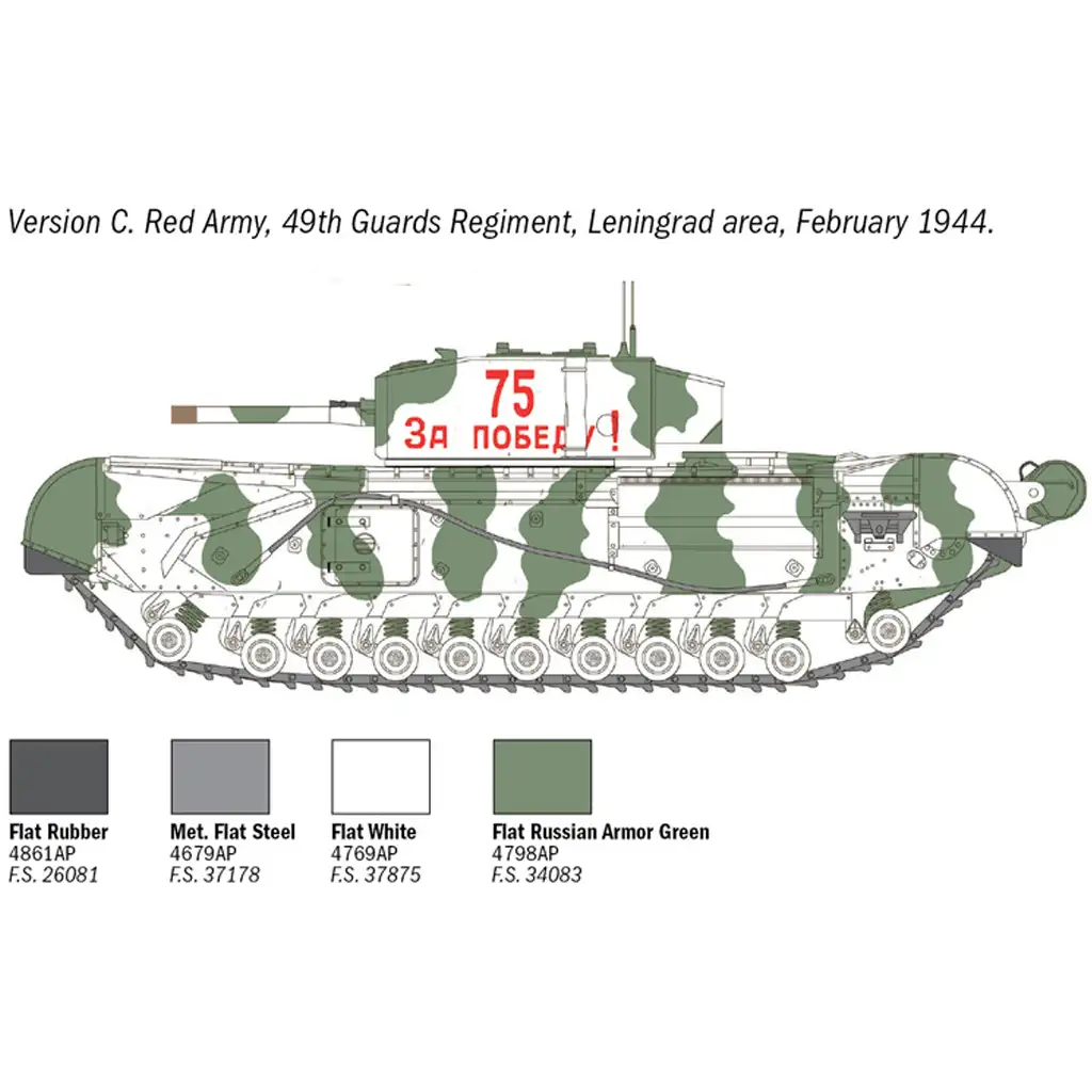 Acest model Italeri la scară 1:72 al Churchill Mk. III este o replică detaliată și precisă a tancului original. Setul include elemente fin lucrate, inclusiv șenile adezive și armura caracteristică a vehiculului de luptă. Pachetul conține o figurină care sporește realismul modelului, precum și patru opțiuni de decalcomanii, permițând reprezentarea diferitelor unități britanice și aliate.