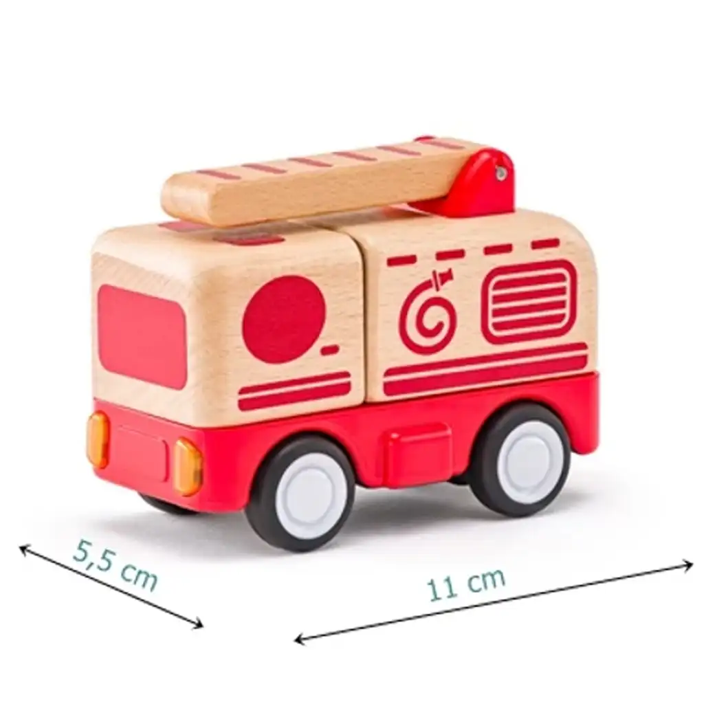 Această mașină clasică de pompieri din lemn dezvoltă imaginația copiilor, abilitățile motorii fine și competențele de joc de rol, menținându-le atenția timp de ore îndelungate.