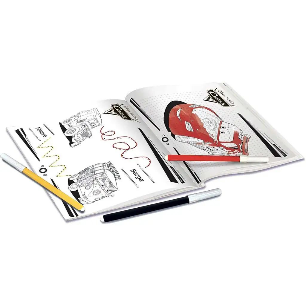 Setul mic de desen Cars este visul copiilor pasionați de mașinuțe, unde, cu ajutorul lui Fulger McQueen, Bucșă și al prietenilor, își pot dezvolta creativitatea și îndemânarea. Setul, inspirat de îndrăgita poveste Disney Pixar, este o alegere ideală începând de la vârsta de 3 ani, deoarece îi introduce pe copii într-un mod jucăuș în lumea desenului, coloratului și trasării liniilor. Formatul său practic, de dimensiune de buzunar, este partenerul perfect atât pentru călătorii, cât și pentru joaca de acasă.