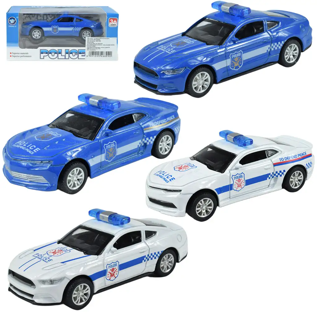 Adăugați în regatul de jocuri al copilului dvs. o mașină de poliție reală, care cu detaliile sale minuțioase și mecanismul de retragere va oferi cu siguranță o experiență de joc interesantă. Disponibil în patru variante diferite, puteți alege liber versiunea care îi place cel mai mult copilului dvs., sau puteți obține toate pentru a completa colecția lor de mașini de poliție.