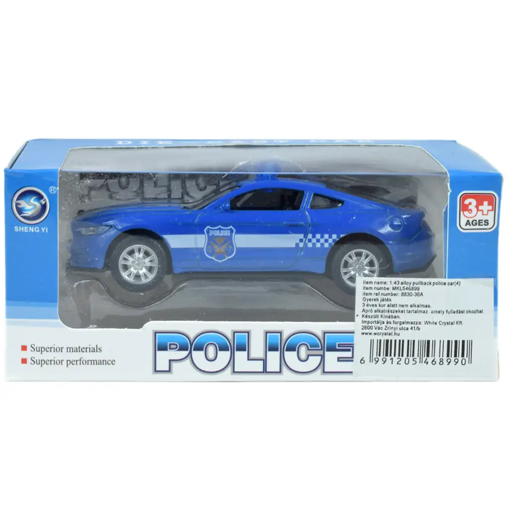 Mașinile de poliție cu mecanism de retragere sunt realizate la scara 1:43 și sunt fabricate din plastic, pentru a fi parteneri de joc de lungă durată pentru copilul dvs.