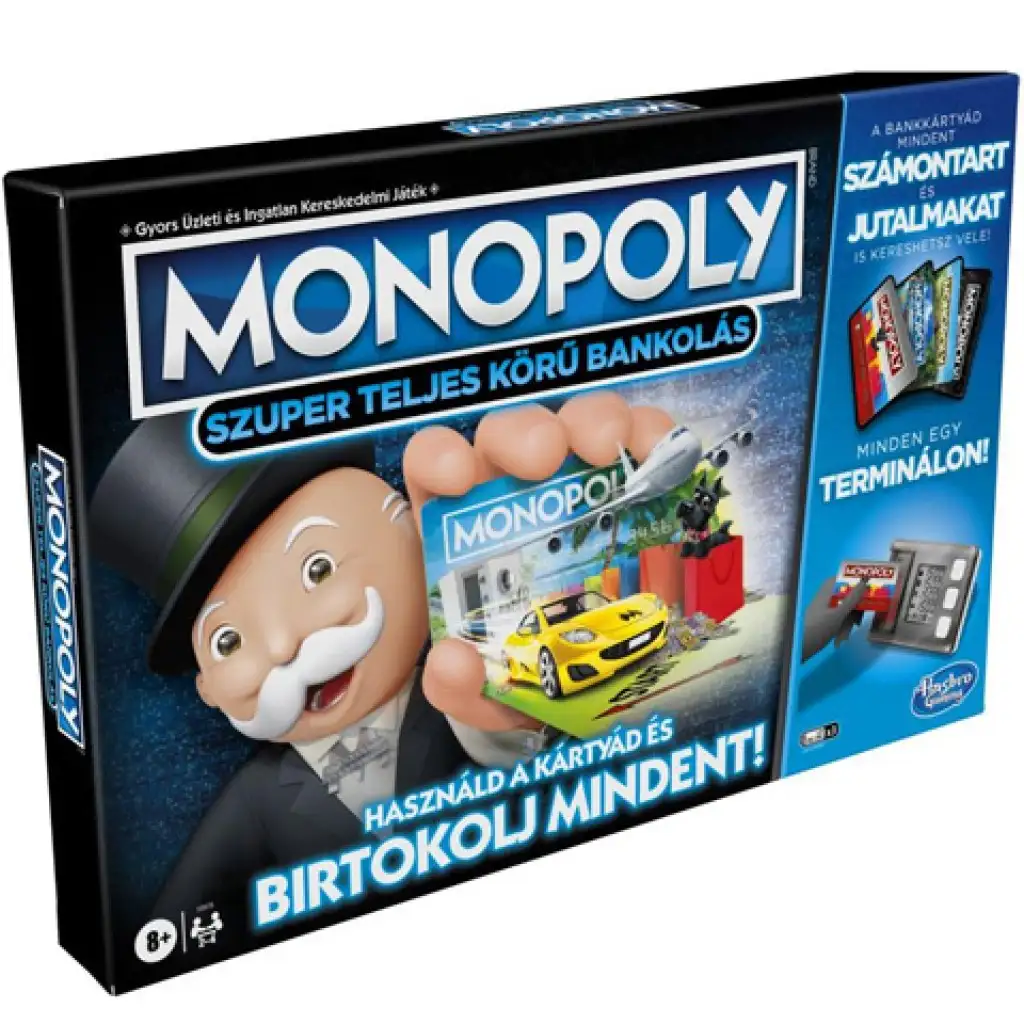 De acum înainte nu va mai fi nevoie de bani, este suficient să folosești cardul bancar în timpul jocului plin de aventuri și întorsături! În jocul de societate Monopoly Super Banking, jucătorii își pot înregistra toate tranzacțiile pe cardul bancar și pot colecta chiar și bonusuri! Scopul jocului rămâne neschimbat; jucătorii trebuie să adune cât mai mulți bani prin achiziționarea de proprietăți, iar cel mai bogat câștigă jocul!