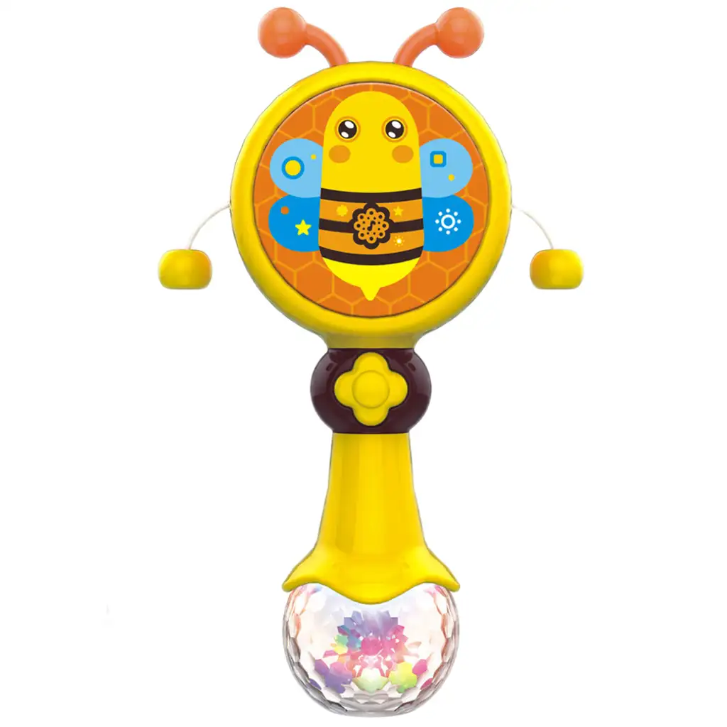 Aspectul impresionant al jocului adaugă un plus de atracție. Pe un fundal galben lămâie este decorat cu un drăguț model cu albine, care cu siguranță va stârni interesul și imaginația copiilor. Albinele plasate pe partea de sus a tamburinei radiază veselie și jucăușenie, în timp ce globul de culoare galben lămâie de pe partea de jos a mânerului oferă un aspect unic jocului.
