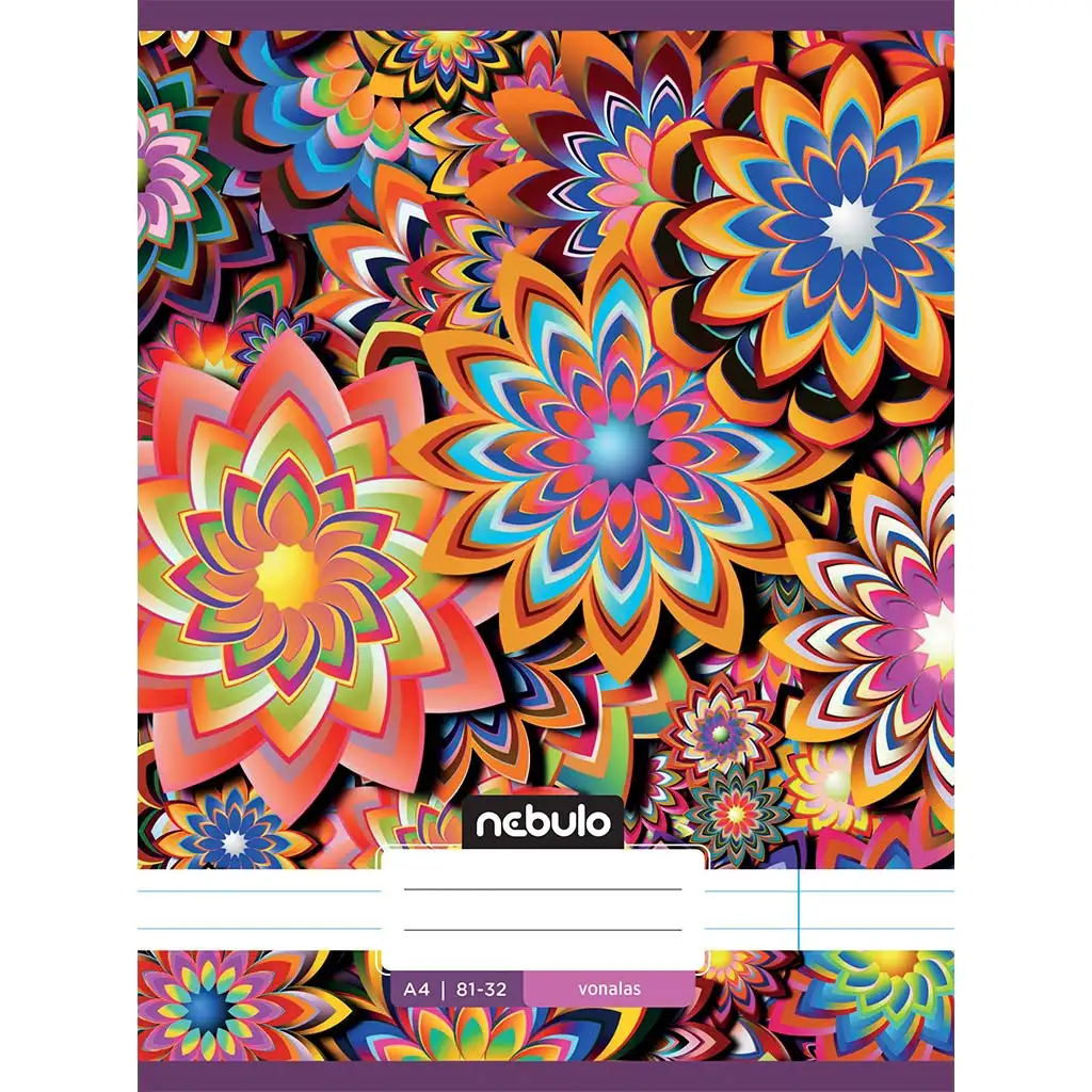 Nebulo: Caiet cu linii, cu spirală, cu model floral fractal, 81-32, format A4Nebulo: Caiet cu linii, cu spirală, cu model floral fractal, 81-32, format A4