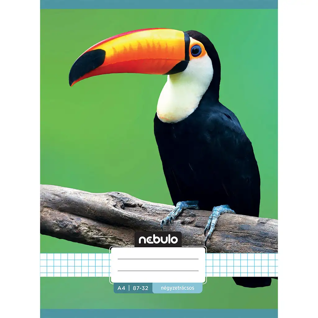Nebulo: Caiet cu model de tucan pătat, format A4, 87-32Nebulo: Caiet cu model de tucan pătat, format A4, 87-32