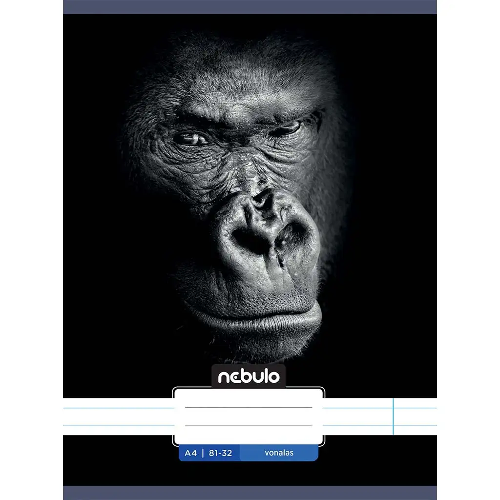 Nebulo: Caiet liniat capsat, format A4, cu model de gorilă, 81-32Nebulo: Caiet liniat capsat, format A4, cu model de gorilă, 81-32
