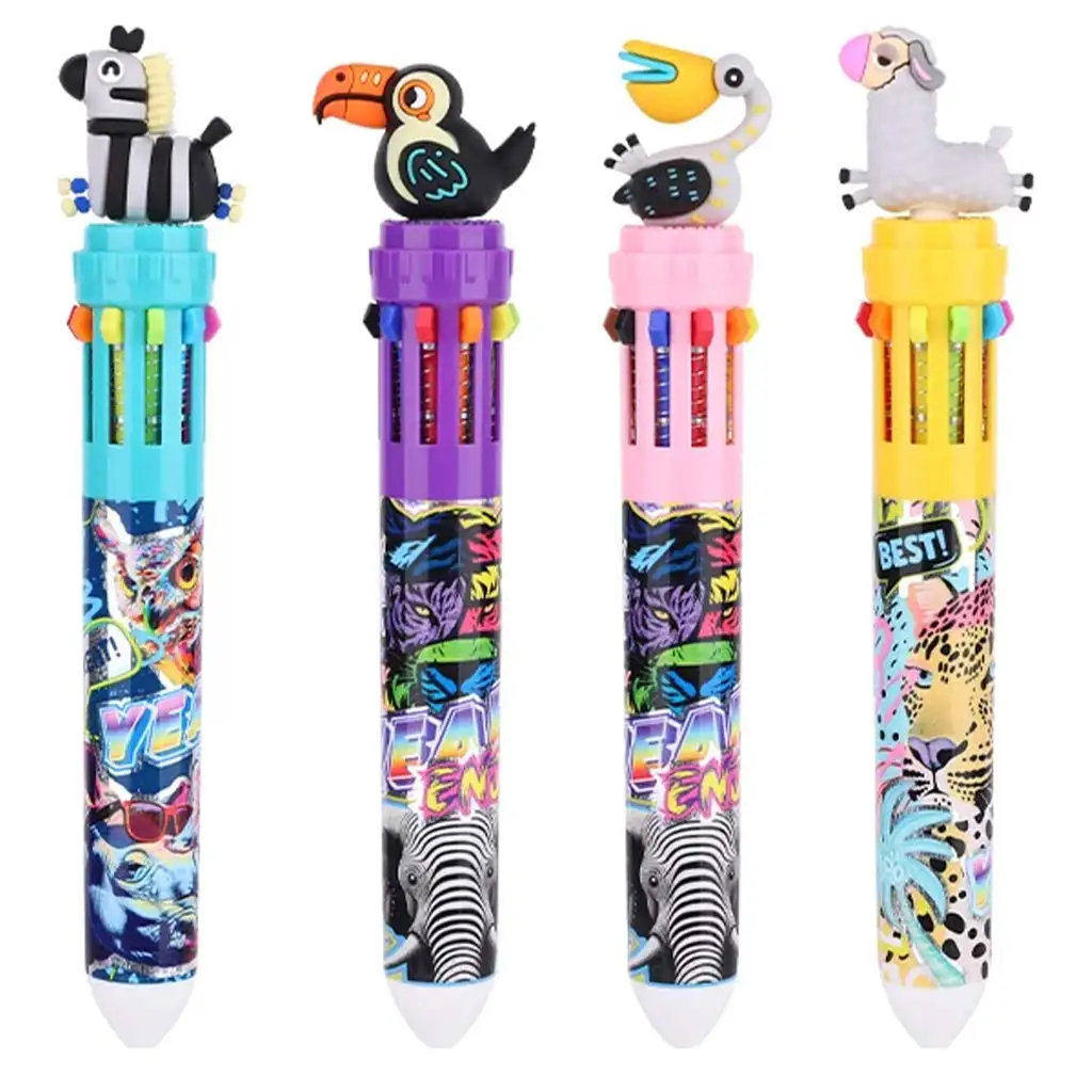 Această aventură Safari – un pix cu 10 culori – va deveni cu siguranță pata de culoare veselă din echipamentul școlar și va câștiga rapid simpatia copiilor! Pe vârful fiecărui pix se află o figurină drăguță de animal – de exemplu, o zebră, un tucan, un pelican sau o oiță –, care aduce o notă jucăușă procesului de învățare. Corpul pixului este decorat cu grafice vii, cu motive de junglă, astfel încât simpla privire asupra lui poate inspira.