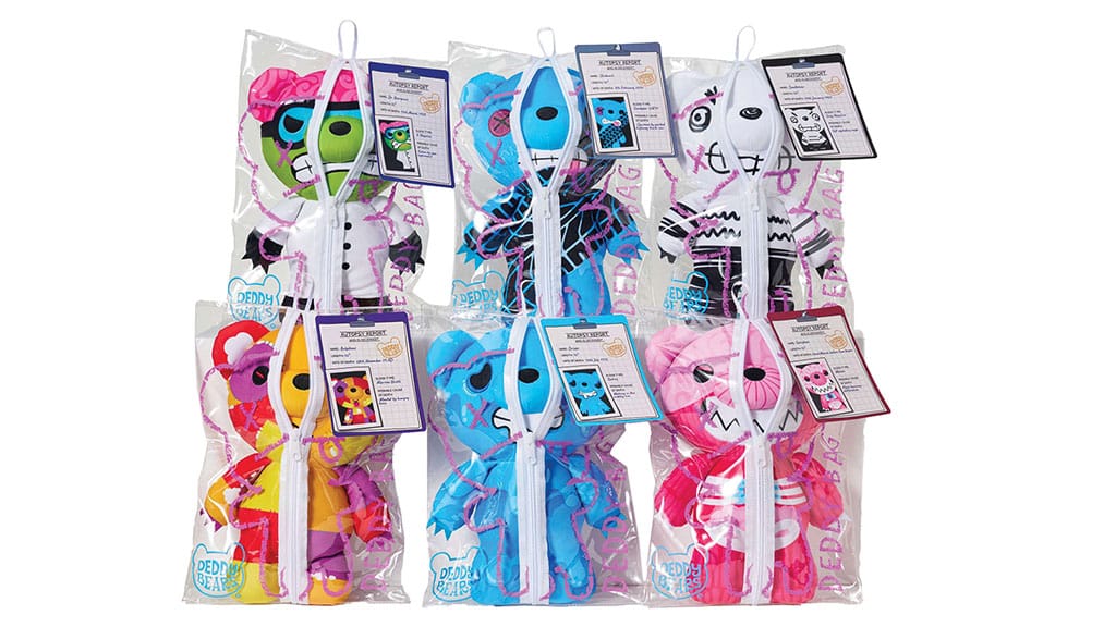 Aceste ursuleți de pluș sunt creați cu o întorsătură întunecată și înfiorătoare — fiecare vine într-un sac pentru cadavre, însoțit de un raport de autopsie și un certificat de deces. Ambalajul special și documentația detaliată fac aceste jucării și mai misterioase și unice, astfel încât pot fi o alegere interesantă nu doar pentru colecționari, ci și pentru cei care caută cadouri deosebite.