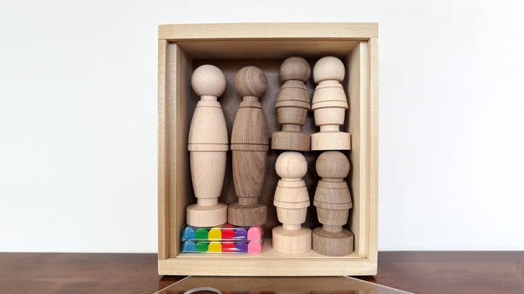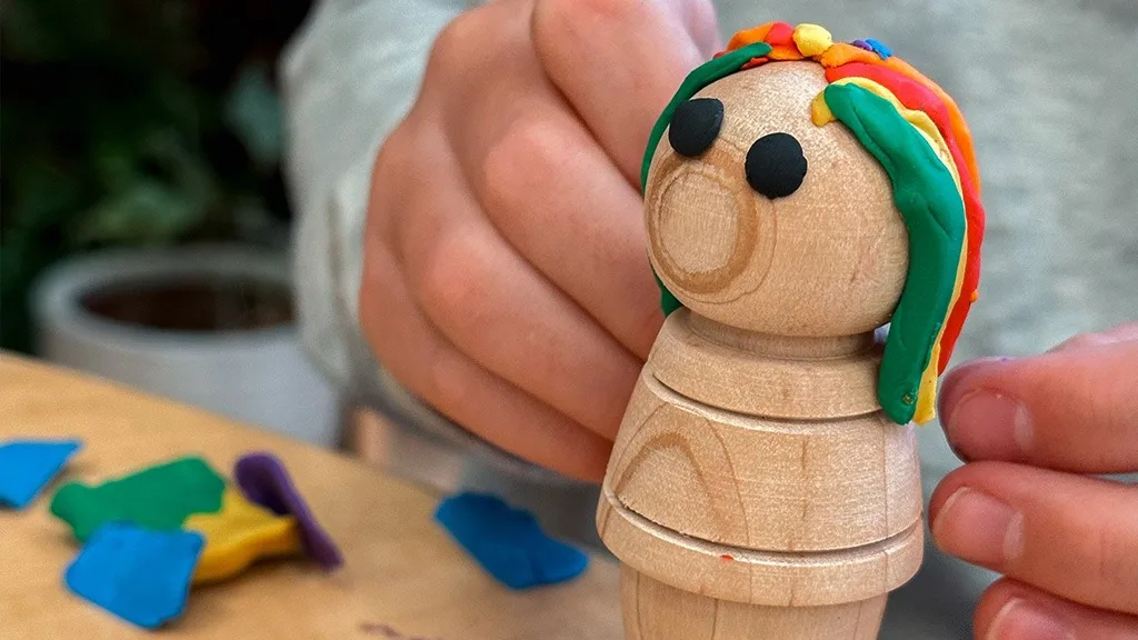 Aceste figurine din lemn sustenabil sunt disponibile în două dimensiuni (Înalt și Scurt), precum și în nuanțe de lemn de arțar deschis, nuc brun și lemn mixt. Copiii pot să le decoreze cu lutul inclus care nu se întărește, adăugându-le coafuri, haine și multe altele. Se pot alege seturi ambalate sau figurine individuale.