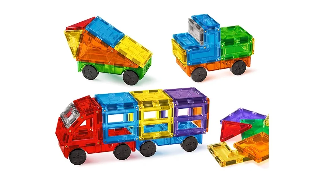 Acest set conține plăci magnetice pe care copiii le pot folosi pentru a construi diferite vehicule. Include 50 de bucăți și 4 șasiuri, toate în 7 culori transparente.Pentru copiii pasionați de puterea magneților, setul Magnetic Wonder Tiles - Vehicle Builder include plăci de plastic care sunt echipate cu magneți pe toate laturile. Copiii pot construi camioane, stivuitoare și multe alte vehicule care se mișcă lin datorită șasiului magnetic.