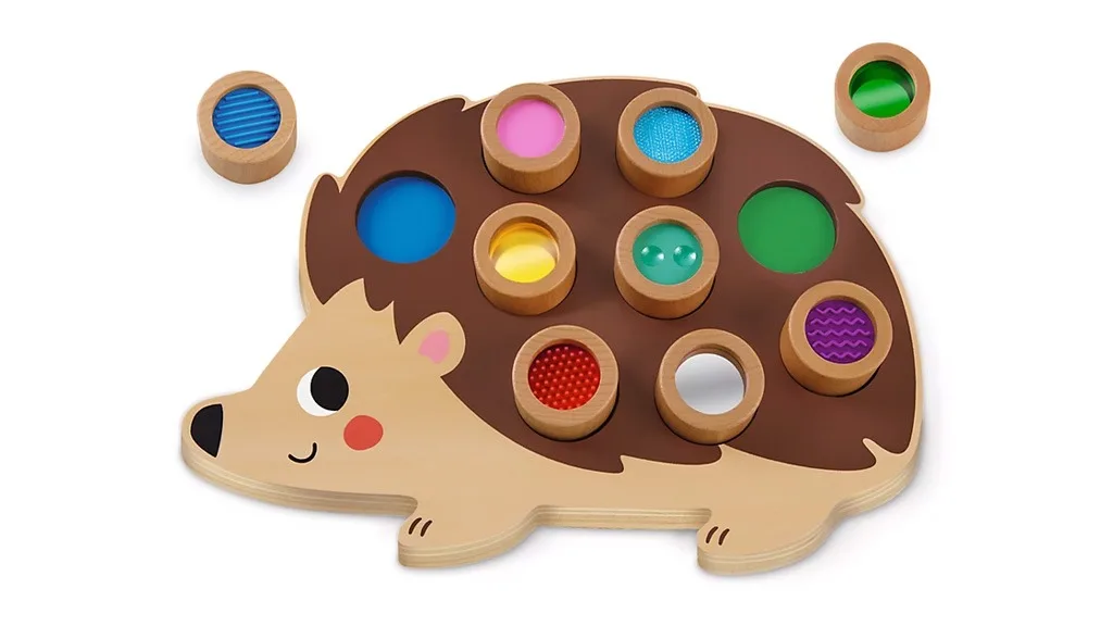 Acest puzzle în formă de porc conține "țepi" ale căror culori corespund cu cercurile de pe tablă. În țepi sunt încorporate texturi și elemente vizuale pentru o experiență senzorială.Micuții iubitori de animale pot găsi o distracție senzorială unică în Setul Senzorial de Descoperire & Asociere. Acest puzzle în formă de arici conține o varietate de texturi, cu "țepi" care sunt netezi, zgrunțuroși, lucioși și colorați. Copiii pot rezolva puzzle-ul prin apucarea unui țep și asocierea acestuia cu culoarea corespunzătoare de pe tablă.