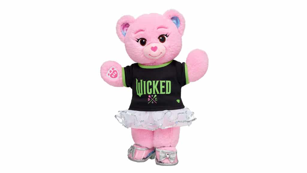 Copiii își pot îmbrăca ursulețul de pluș cu un tricou cu logo-ul „Wicked”! Această piesă vestimentară specială se găsește în oferta Build-A-Bear, care permite fiecăruia să-și personalizeze ursulețul de pluș. Pentru fanii musicalului „Wicked”, aceasta este o oportunitate excelentă de a aduce atmosfera poveștii preferate și în jucăriile lor. În magazinele Build-A-Bear sunt disponibile și multe alte haine și accesorii tematice, astfel încât copiii își pot îmbrăca prietenii de pluș după propria creativitate.Ursulețul Wicked Glinda are blană roz, un nas în formă de inimă și gene ascuțite. Această populară jucărie de pluș are material albastru-roz cu model în spirală în urechi și pe tălpi, ceea ce îi conferă un aspect și mai deosebit. Ursulețul Wicked Elphaba se mândrește cu o blană verde, texturată și sprâncene arcuite, accentuate. Urechile și tălpile îi sunt decorate cu material verde-negru cu model. Aceste plușuri nu sunt doar drăguțe, ci datorită detaliilor lor bogate pot deveni adevărate piese de colecție pentru orice fan.