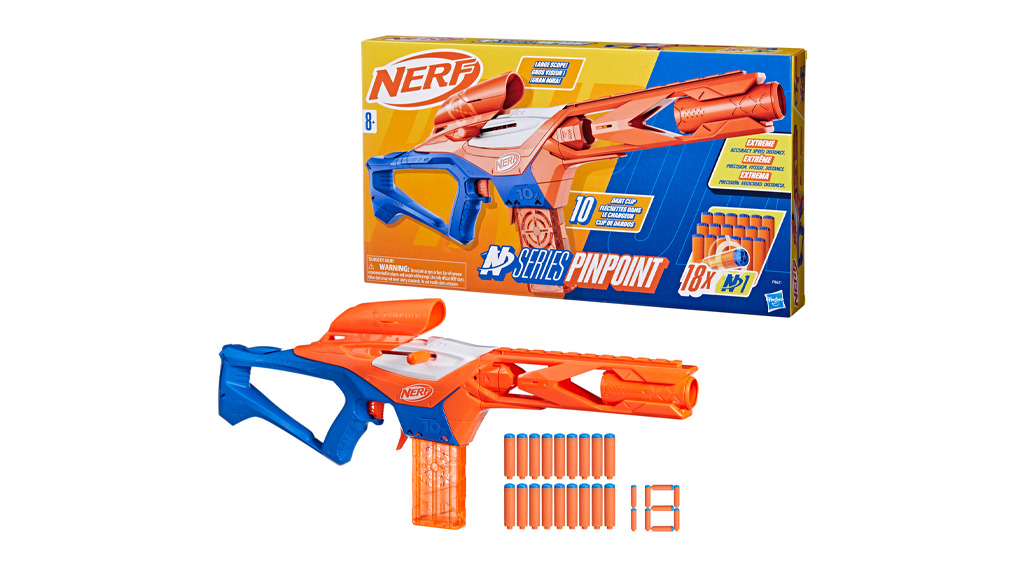 NERF N Series Pinpoint este o alegere excelentă pentru toți cei care iubesc jocurile distractive și palpitante. Acest produs este unul dintre cele mai populare produse ale Hasbro, garantând ore întregi de distracție. Jucăriile NERF sunt renumite pentru calitatea și durabilitatea lor, așa că poți fi sigur că acest produs te va servi mult timp. Prețul în dolari este extrem de avantajos, având în vedere experiența și calitatea oferite de produs.
