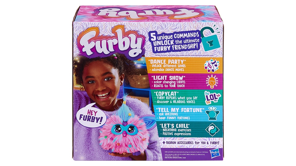 Copiii (și părinții) știu că „Furbies” pot comunica între ei, iar „Furby Cotton Candy” nu face excepție. Acest joc interactiv vorbește în engleză și „Furbish”, cântă, râde, dansează și răspunde la vorbirea copiilor, precum și la alți prieteni Furby. Desigur, Furby Cotton Candy are cinci moduri controlate prin voce. Deși Furby nu se conectează la internet, acest joc fără ecran poate fi oprit.
