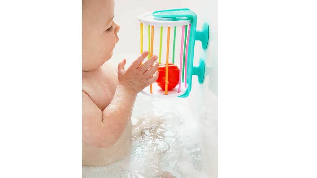 Copiii pot turna apă în cada de baie In Then Out. Acest joc dezvoltă abilitățile motorii fine, oferind în același timp o experiență distractivă în timpul băii. Circulația apei în și din cadă ajută la dezvoltarea abilităților de rezolvare a problemelor și a creativității, în timp ce cei mici descoperă mișcarea și proprietățile apei.Setul conține paharul de baie **Scoop & Spin**, tubul de baie **In Then Out**, cartea de baie **Talk & Play**, oglinda de baie **I See You**, moara de apă **Fast & Slow**, mingea de baie **Shake & Splash**, **Rațele Mari și Mici**, barca **Peek-A-Book**, precum și un **ghid de joacă** pentru ca părinții să se poată juca împreună cu copiii. Cu opt jucării diferite, baia devine o **aventură cu adevărat palpitantă** pentru cei mici. Aceste jucării nu doar distrează copiii, ci le dezvoltă **abilitățile motorii fine**, **coordonarea mână-ochi** și **creativitatea**. Elementele colorate și variate ajută ca fiecare baie să ofere o experiență nouă, în timp ce părinții pot participa activ la joacă și la procesul de învățare.