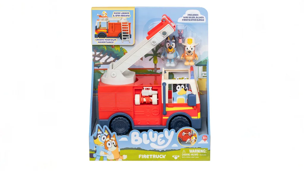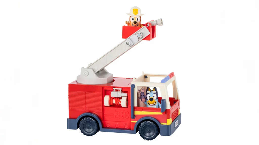 Mici aventurieri; pasionați de camioane; fanii clanului Heeler.Pe baza popularului show TV Bluey, copiii sting focuri imaginare cu ajutorul lui Bluey și Bingo. Camionul de pompieri are o scară extensibilă și un furtun pentru figurine, cu un furtun rotativ pe o parte a camionului și o scară detașabilă pe cealaltă parte.