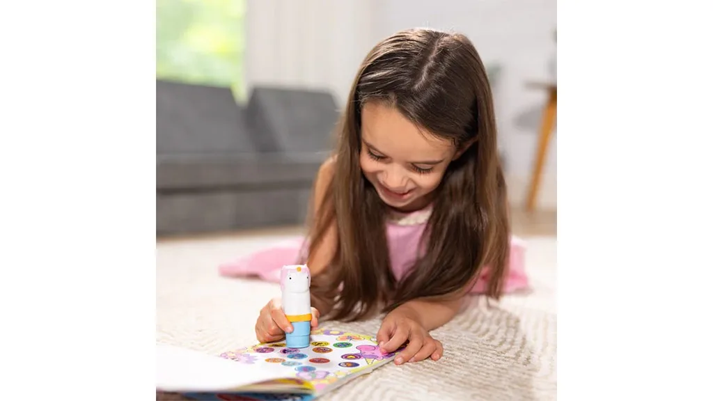 Pentru copii de 3 ani și mai mari, ștampila cu autocolante este ușor de utilizat de mâinile mici, cu 300 de autocolante preîncărcate, care nu au o parte din spate de desprins. Autocolantele sunt ușor de îndepărtat, astfel încât părinții nu trebuie să-și facă griji că autocolantele ajung în locuri nedorite.