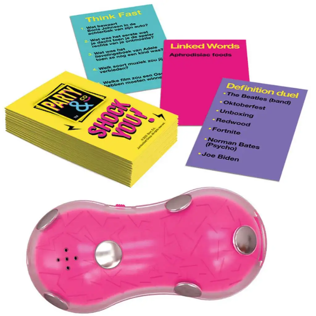 Party & Co: Shock You este un joc de societate palpitant și dinamic, care cu siguranță va anima întâlnirile cu prietenii sau serile în familie! Particularitatea jocului constă în faptul că include trei tipuri de provocări, iar tensiunea este dată de dispozitivul „Shock Nut” cu temporizare aleatorie, care poate emite un mic șoc electric dacă timpul se scurge. Scopul este să finalizezi sarcinile înainte ca Shock Nut să „sune” și să emită o mică vibrație – care poate fi complet omisă dacă jucătorii decid astfel.