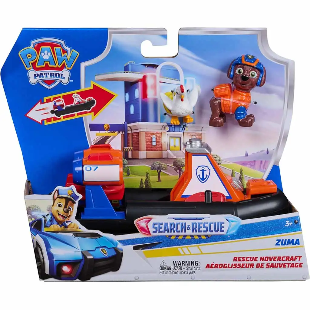 Vehiculul Zuma Search & Rescue cu mecanism de tragere înapoi și figurina inclusă îi invită pe fanii Patrulei Cățelușilor la misiuni incitante de salvare pe apă. Zuma, cățelul salvator curajos și mereu vesel al echipei, pornește acum în acțiune cu propriul său vehicul amfibiu pentru a-i aduce pe cei aflați în pericol în siguranță. Designul vehiculului reflectă fidel misiunile Search & Rescue din serial, iar culorile portocaliu-albastre și elementele bogat detaliate fac jucăria ușor de recunoscut.