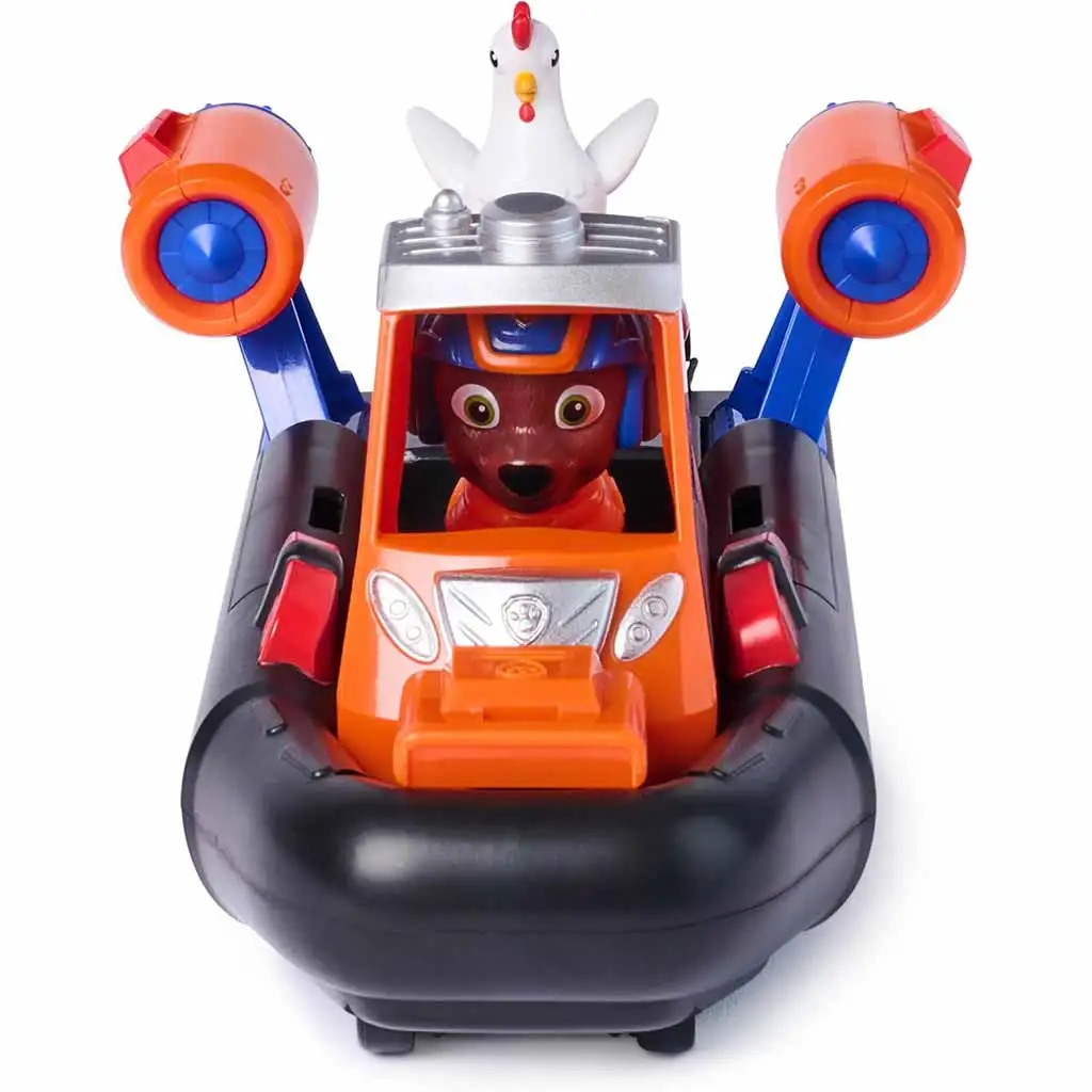 Vehiculul funcționează cu un mecanism de tragere înapoi: copiii trebuie doar să-l tragă înapoi și să-l elibereze, iar ambarcațiunea cu pernă de aer pornește rapid înainte, ca și cum s-ar grăbi către o intervenție de urgență. În pachet se găsește și figurina Zuma, ce se potrivește perfect în vehicul, precum și o mică figurină salvată, care oferă și mai multe posibilități pentru a inventa povești. Toate elementele sunt proiectate special pentru mâini mici, fiind ușor de manevrat și rezistente.