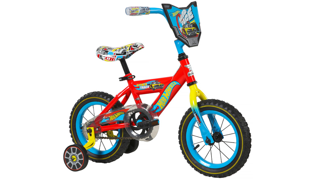 Această bicicletă inspirată de Hot Wheels are un scut de protecție pentru ghidon, pe care se poate citi inscripția "Pregătit pentru cursă", și este decorată cu roți ajutătoare și grafice cu mașini Hot Wheels. Concurenții pot "Ataca Pista" cu bicicleta roșie, albastră și galbenă! În plus, bicicleta este echipată cu un cadru robust și un șa confortabil, pentru ca copiii să o poată folosi în siguranță și cu plăcere. Designul colorat și detaliile elaborate garantează că va fi preferata fiecărui mic concurent.