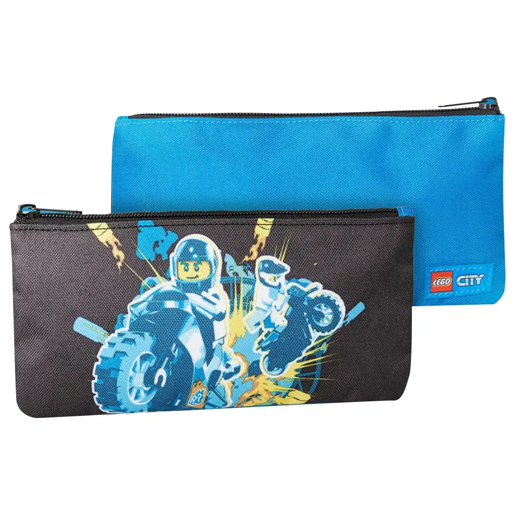 Penarul are un design cu două fețe: pe una dintre părți este decorat cu o scenă LEGO dinamică, plină de acțiune, cu motocicliști, iar cealaltă parte are o culoare de bază albastră intensă și logo-ul LEGO City. Compartimentul său spațios, care se închide cu fermoar, protejează instrumentele de scris depozitate în interior împotriva căderii și oferă suficient spațiu pentru pixuri, creioane, radiere și chiar și o riglă.
