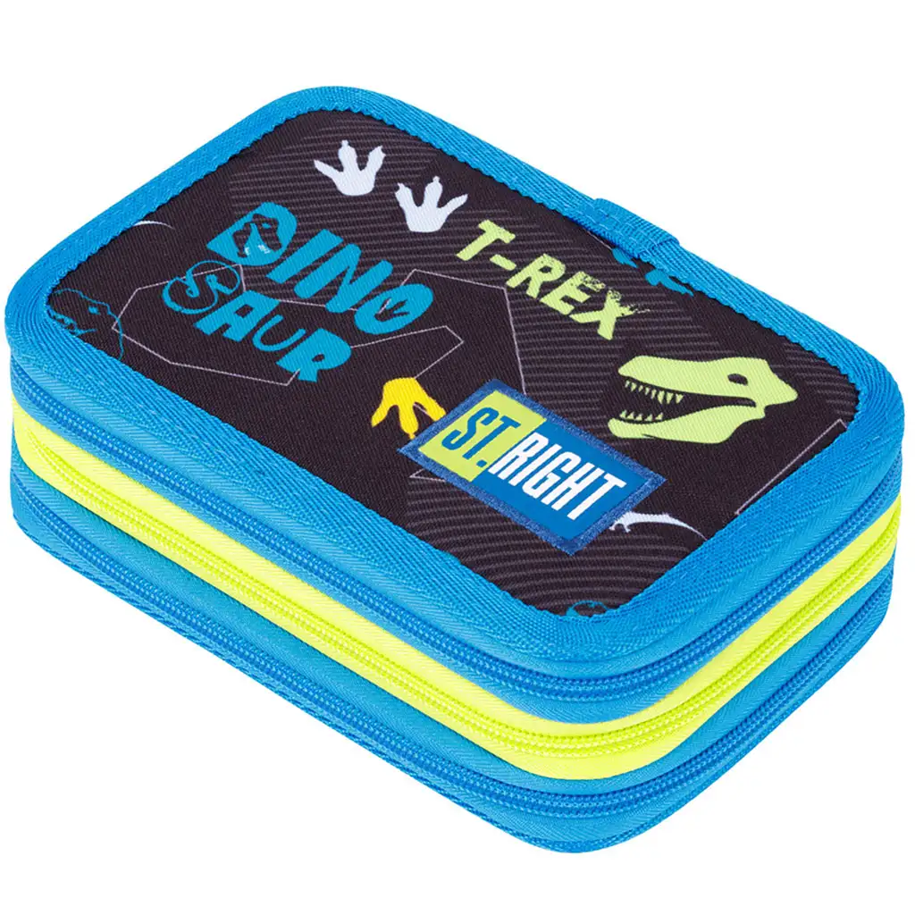 Penarul St.Right cu dinozauri, cu trei etaje și complet echipat, este alegerea perfectă pentru orice mic explorator pasionat de dinozauri. Acest penar nu este doar practic, ci și extrem de atrăgător pentru tineri, datorită graficii colorate și captivante cu dinozauri.