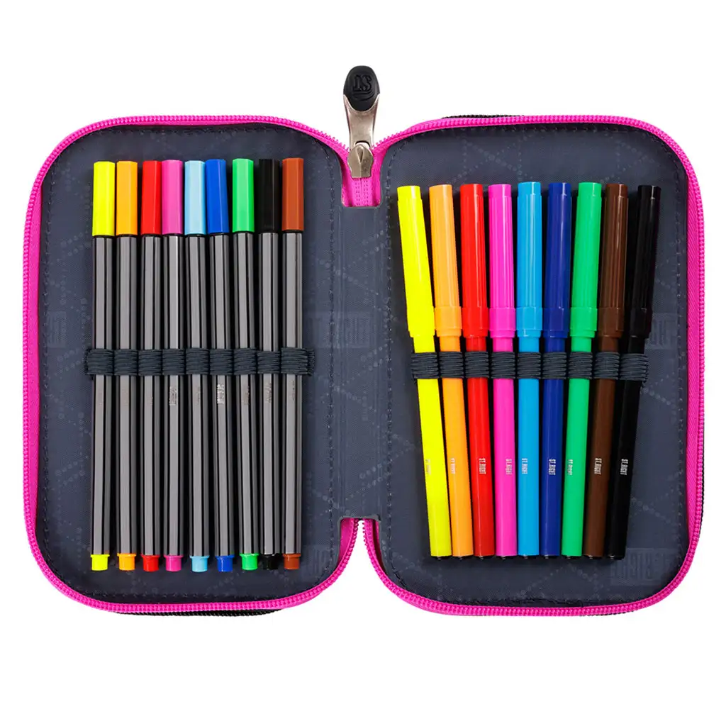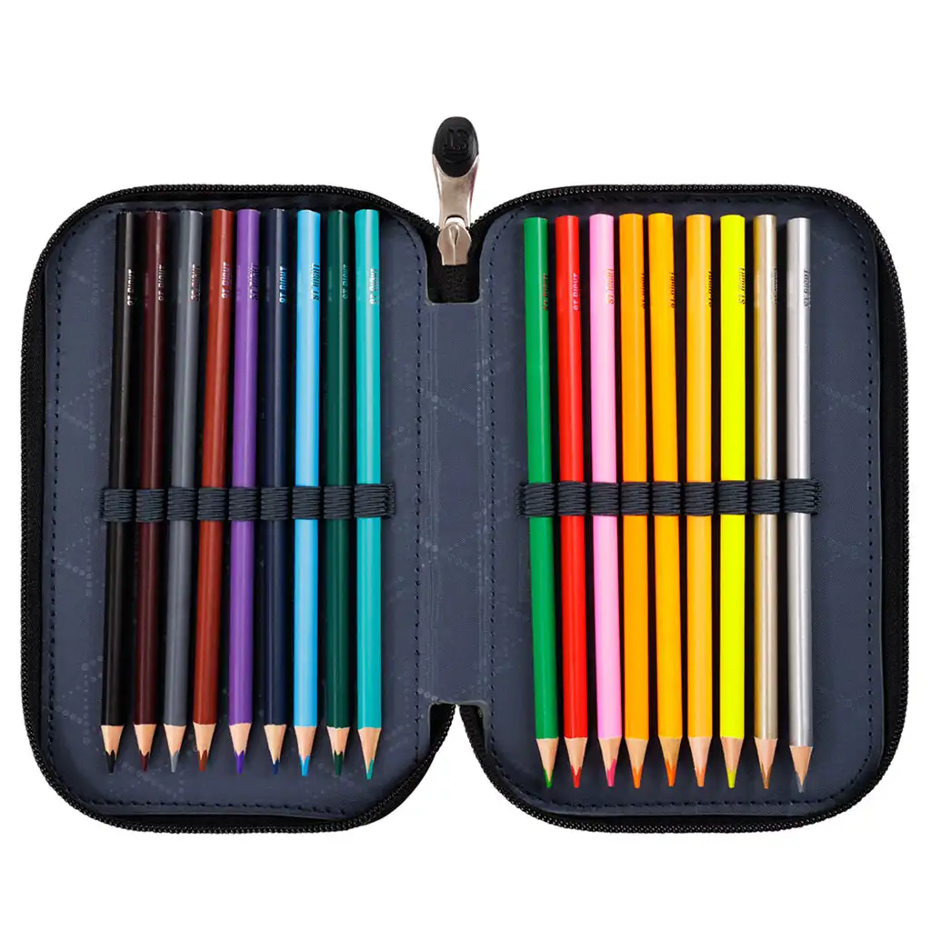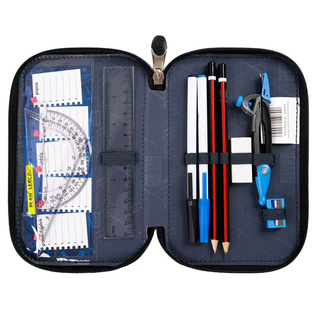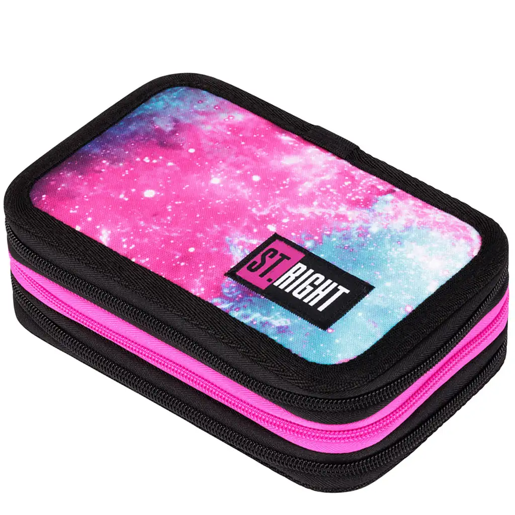 St.Right Nebula este o alegere impresionantă pentru orice elev care iubește designul colorat și modern. Acest penar nu este doar frumos, ci și extrem de practic, având trei compartimente cu fermoar care oferă suficient spațiu pentru toate instrumentele școlare necesare.