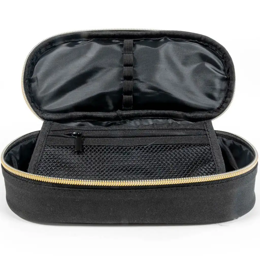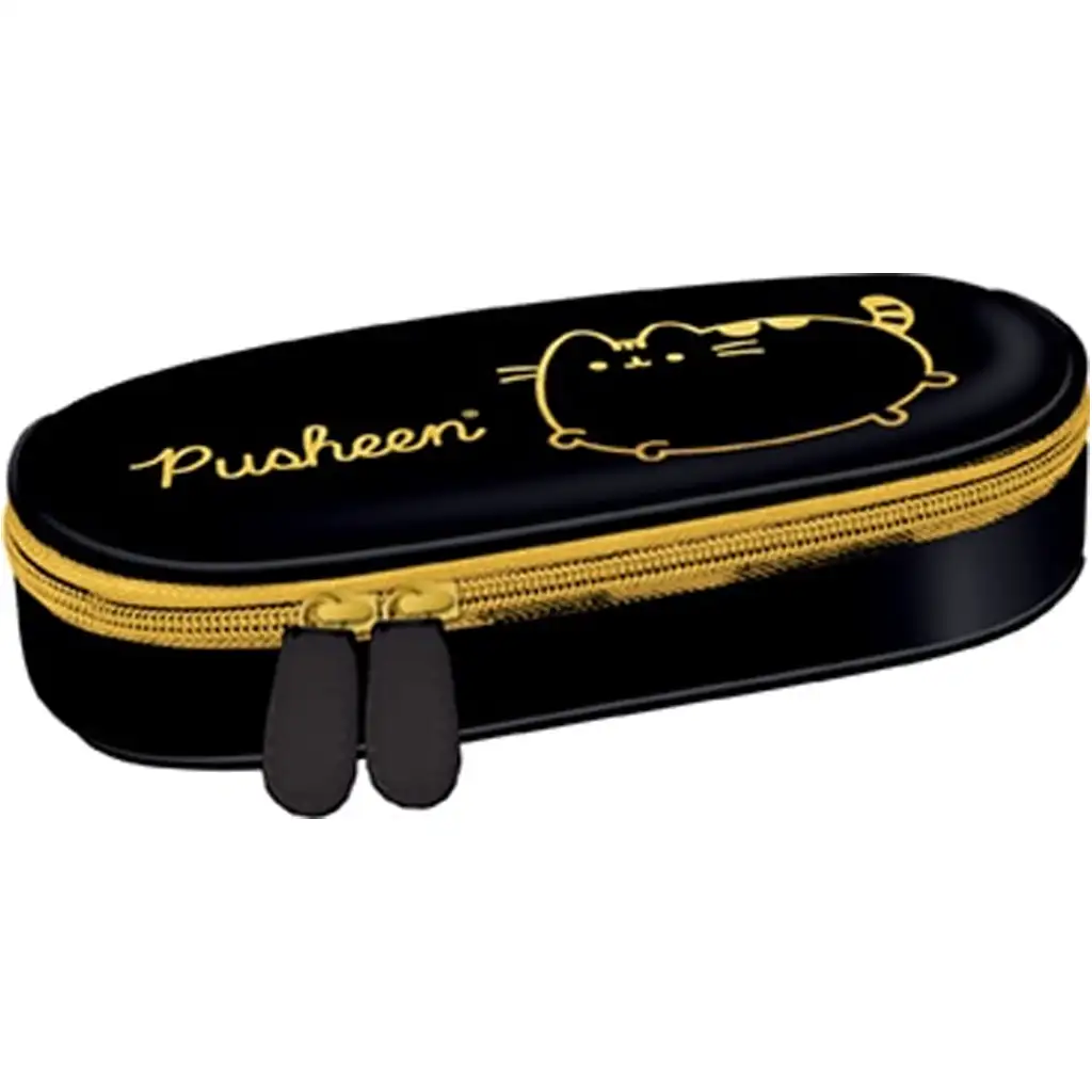 Acest penar oval Pusheen Gold este alegerea perfectă dacă vrei ca copilul tău să meargă la școală cu stil și organizare! Culoarea de bază neagră și modelele aurii oferă penarului un aspect elegant, dar jucăuș. Grafica cunoscutului motan Pusheen, conturată cu linii aurii, este atât veselă, cât și simplă, așa că poate deveni preferata nu doar a celor mici, ci și a elevilor mai mari. Dimensiunile de 20,5 × 9,5 × 5 cm sunt ideale pentru depozitarea celor mai importante instrumente de scris pentru școală, permițând penarului să încapă ușor în rucsac sau în geanta de școală.
