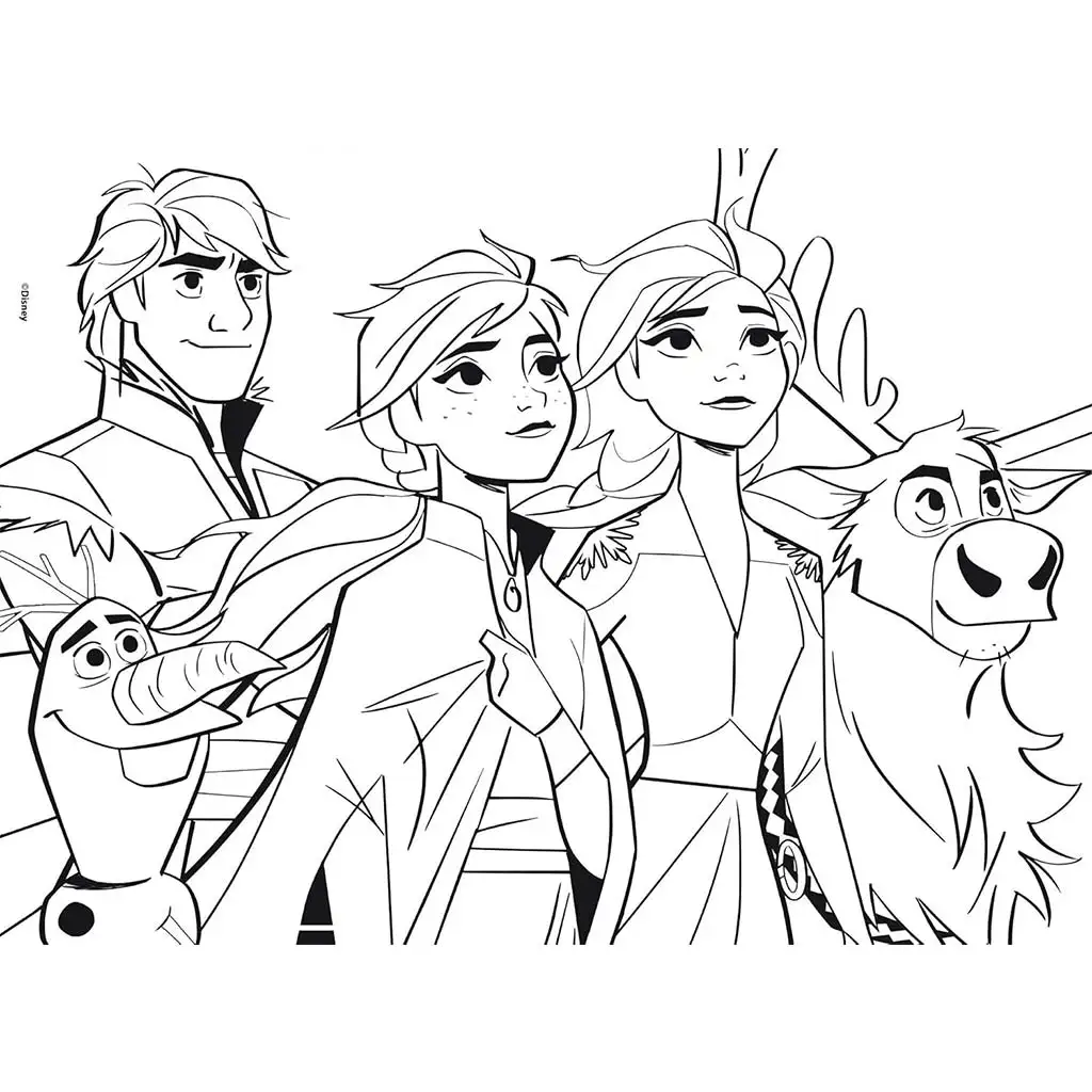 Personajele principale din Regatul de Gheață 2 în 1 maxi puzzle de 24 de piese și carte de colorat 70x50cm - Lisciani