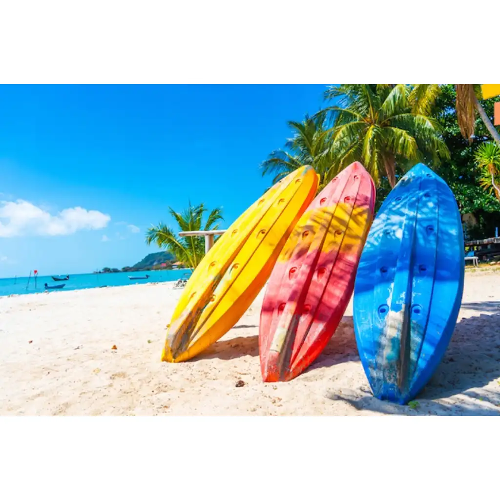 Adu acasă atmosfera verii de la malul mării cu tabloul mozaic cu diamante „Plăci de surfing”! Acest set pentru pictură cu diamante, de 40x50 cm, reprezintă o scenă însorită pe plajă, unde trei plăci de surfing în culori vii – galben, roșu și albastru – așteaptă valurile la umbra palmierilor. Fiecare detaliu al imaginii evocă libertatea verii și momentele lipsite de griji – o alegere perfectă dacă vrei să aduci puțin din atmosfera verii în locuința ta.