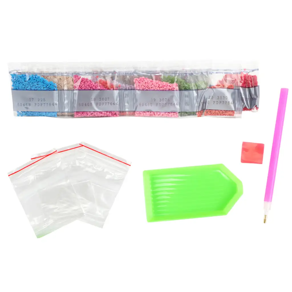 Pictatul cu diamante este o activitate minunată pentru părinți și copii: este jucăușă, dar și educativă, dezvoltând motricitatea fină, concentrarea și răbdarea. În set găsești tot ce ai nevoie: pânză preimprimată și autocolantă, pietricele colorate, stilou pentru aplicarea diamantelor, ceară, tavă și punguțe pentru depozitare. Simbolurile de pe pânză te ajută să plasezi cu ușurință pietricelele, astfel încât și copiii mai mici se pot descurca fără probleme.
