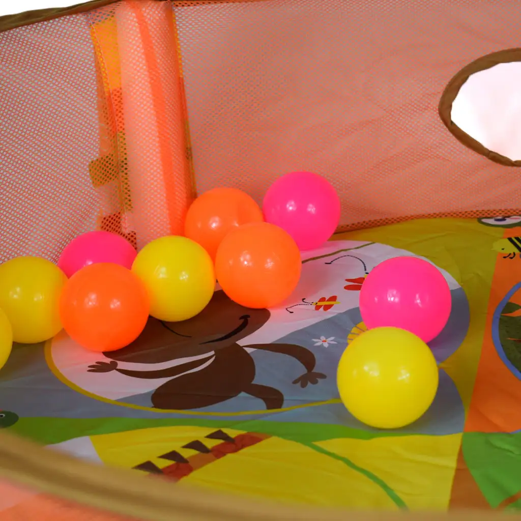 Specialitatea piscinei este că poate fi umplută cu bile, astfel bebelușul tău poate să se joace, să se rostogolească, să atingă și să descopere lumea din jurul său în multe moduri. Acest lucru nu doar că îmbunătățește dexteritatea mâinilor, dar și mișcarea motorie. Designul colorat cu siguranță va stârni interesul bebelușului tău.