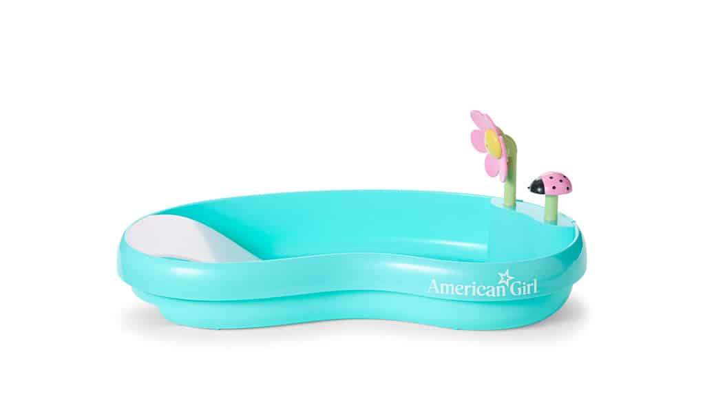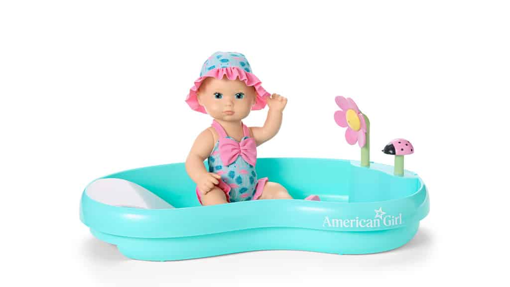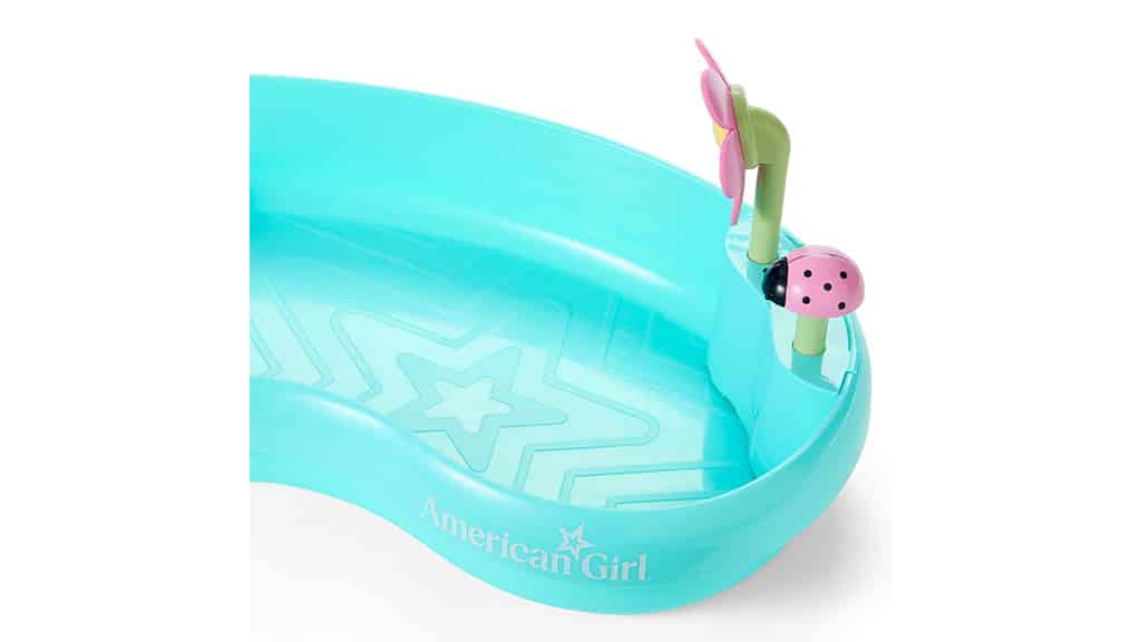 Piscină de joacă de dimensiune pentru păpuși, care se potrivește perfect pentru păpușile American Girl Bitty Baby. Familiile pot umple piscina cu apă, pot apăsa buburuza pentru ca stropii de apă să iasă din margaretă, iar păpușile pot fi lăsate să alunece pe toboganul încorporat. Păpușile Bitty Baby se achiziționează separat. Această piscină de joacă oferă copiilor o oportunitate excelentă de a se juca creativ și vesel, dezvoltându-și imaginația și abilitățile motorii fine. Designul colorat și vesel al piscinei va capta cu siguranță atenția celor mici și le va oferi ore întregi de distracție.