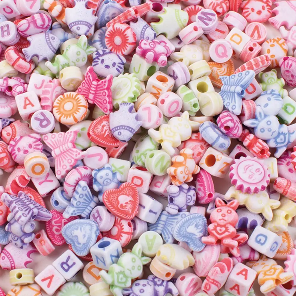 - 350 de mărgele colorate și cu modele, din plastic