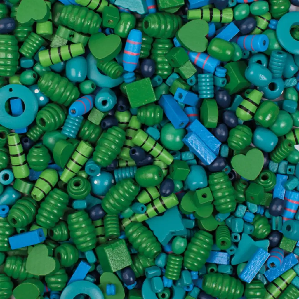 PlayBox: Mărgele de lemn care pot fi fierte, în culori mixte albastru și verde, set de 250g.PlayBox: Mărgele de lemn care pot fi fierte, în culori mixte albastru și verde, set de 250g.