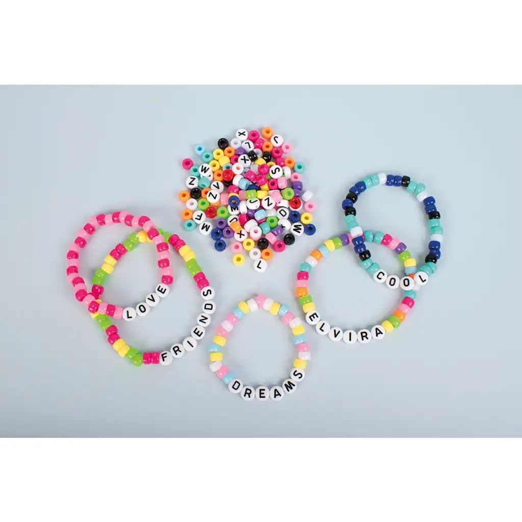 Mărgelele cu litere negre pe fundal alb sunt ușor de citit, iar mărgelele colorate oferă bijuteriilor realizate un aspect viu și vesel. Alfabetul cu litere mari este complet, astfel încât se poate alcătui orice nume, cuvânt sau mesaj scurt. Mărgelele de înșirat au o dimensiune ideală pentru mâinile copiilor, iar găurile sunt suficient de mari pentru a fi ușor de trecut prin șnur sau elastic.