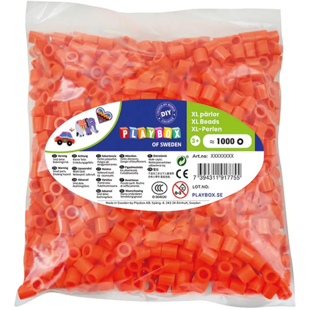 PlayBox: Pachet de 1000 bucăți de mărgele MIDI XL de 9 mm pentru călcat, culoare portocalie
