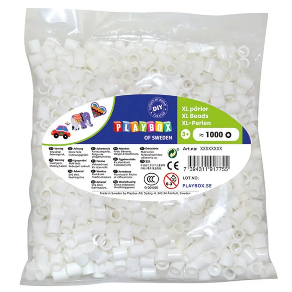 PlayBox: Pachet de mărgele termoadezive XL MAXI de 9 mm, 1000 bucăți, culoare albă